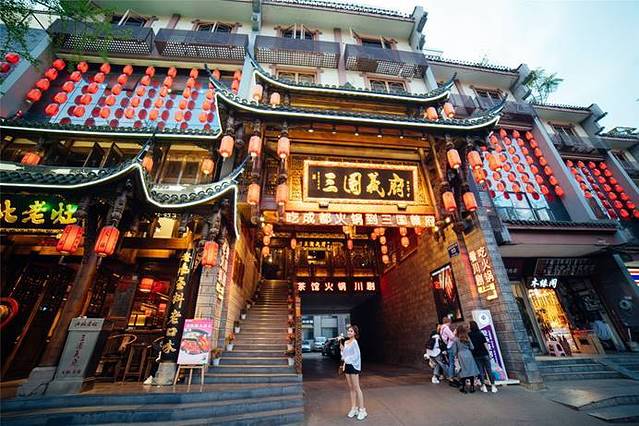 在这条街上,浓缩了成都生活的精华: 有茶楼、客栈、酒楼、酒吧、戏台、风味小吃、工艺品、土特产,充分展现了三国文化和四川民风谷的独特魅力。