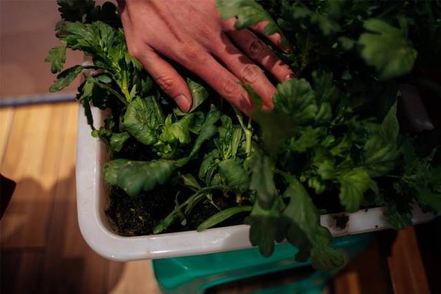 「活体蔬菜」点了一份茼莴菜,是现摘现洗的,确实特别新鲜~