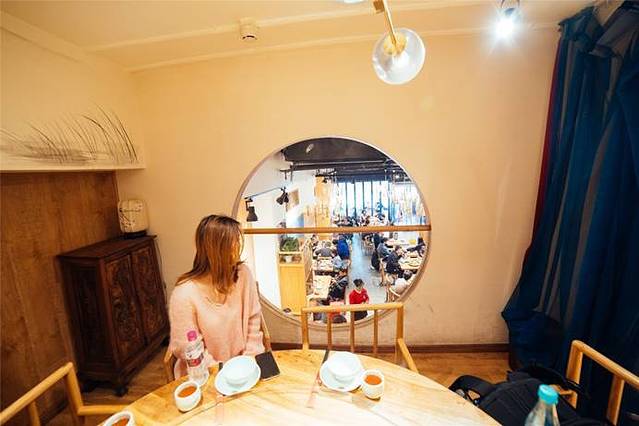 搭配现代化的木作、茶器架、金属楼道、金属架隔断,似乎并没有什么不协调之处,反而有一种独特的工业美感。树木的种植进行了合理的规划,整齐划又排列有序。不少人在这里摄影,果然是文艺范儿汇集地。
