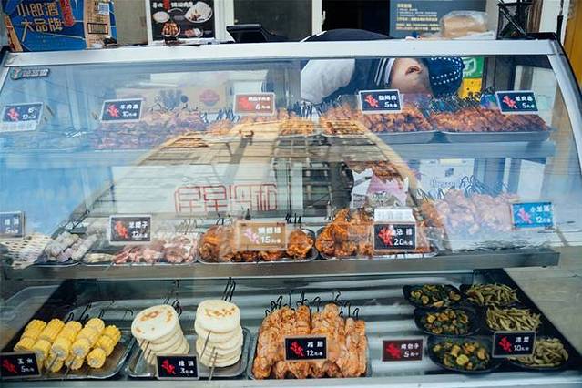 对成都的向往是从赵雷的歌开始的,到了成都真正吸引我的是它的美食!晚饭的安排是吃羊肉串,搭乘地铁2号线,在春熙路站换乘地铁3号线,在新南门B口下车,走个几分钟,到致民东路的寻欢焖烤羊肉串。很朴实的店面,给人一种踏实的感觉。