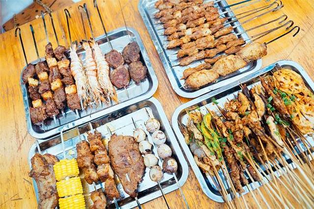对羊肉串的印象一直都是新疆人站在烤炉旁拿着一把羊肉串翻来覆去,撒着海椒面孜然面用新疆味儿的普通话问你来几串所以第一次看到焖烤羊肉串时,颠覆了我的想象。