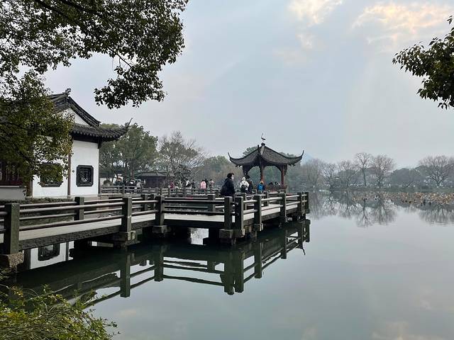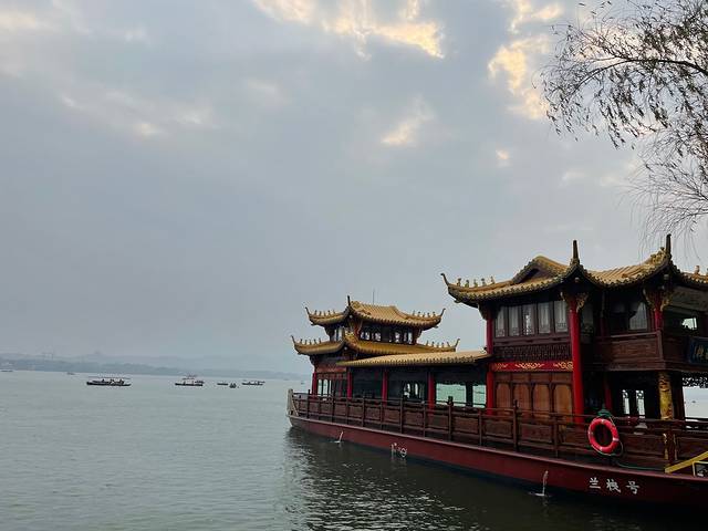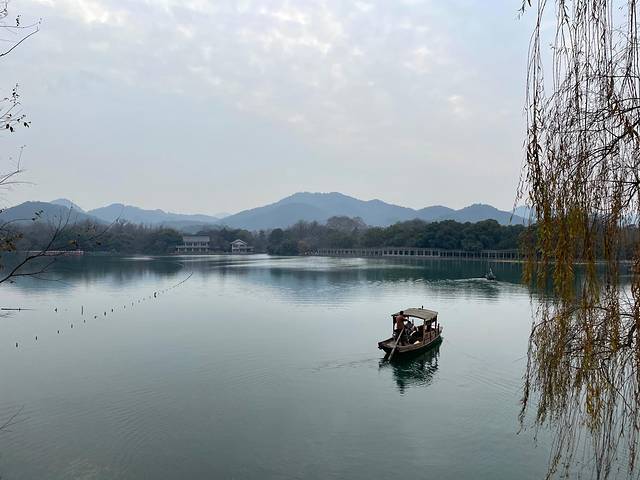 下午来到了西湖。今日的西湖,灰蒙蒙的。别有一番风味。买了票上船不久就开船了。在船上远远的看到了所谓的断桥残雪,没有雪感觉不是很有意境呢,而且人好多啊。最后就是跟着众多的游客瞎游~