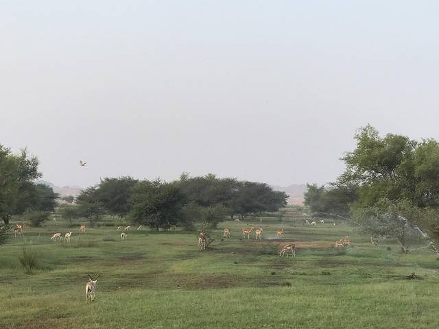 萨巴尼亚岛距阿布扎比国际机场250公里,这里曾经是阿联酋前总统谢赫·扎耶德先生的私人岛屿,仅供阿布扎比酋长家族度假休闲。后来酋长开始在岛上建立自然保护区,将萨巴尼亚岛建成“岛屿方舟”,保护阿拉伯羚羊和其他濒危野生动物。他开始花费巨资从世界各地引进了上万只、1000多种珍惜动物,包括长颈鹿、火烈鸟、羚羊、甚至凶猛矫健的猎豹等。保护区原本仅仅是阿联酋王室的度假胜地,近几年才开始对公众开放,才让我们有幸闯入这片与世隔绝的侏罗纪公园。