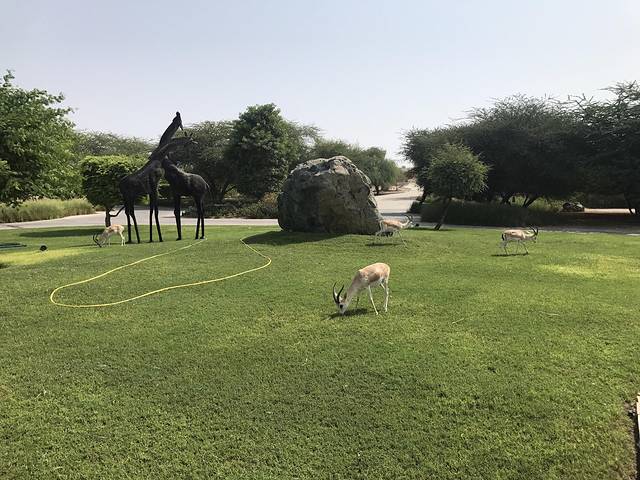 随着管家的车缓缓驶入保护区,Al Sahel Villa Resort 影影绰绰,酒店里里外外随处可见凝眸不语的大羚羊,自顾自的悠哉吃草,肚子都已经圆鼓鼓也不以为然。酒店的常客当然还少不了孔雀,进进出出来来往往,在泳池里喝水,在餐厅里踱步,好不自在。