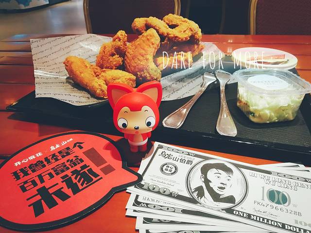 先是买了块cheese cake ,味道还行吧,4000韩元。后来被餐厅其他客人香喷喷的炸鸡味吸引,忍不住还是买了炸鸡,23000韩元,有些贵的,但是量真的多,以至于我们吃完了炸鸡,晚上逛到美食店也吃不下东东啦~