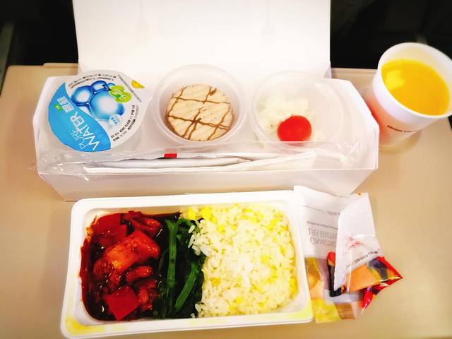韩亚航空的位置很大,而且飞机餐好好吃哦!