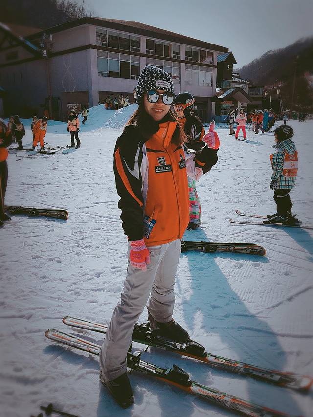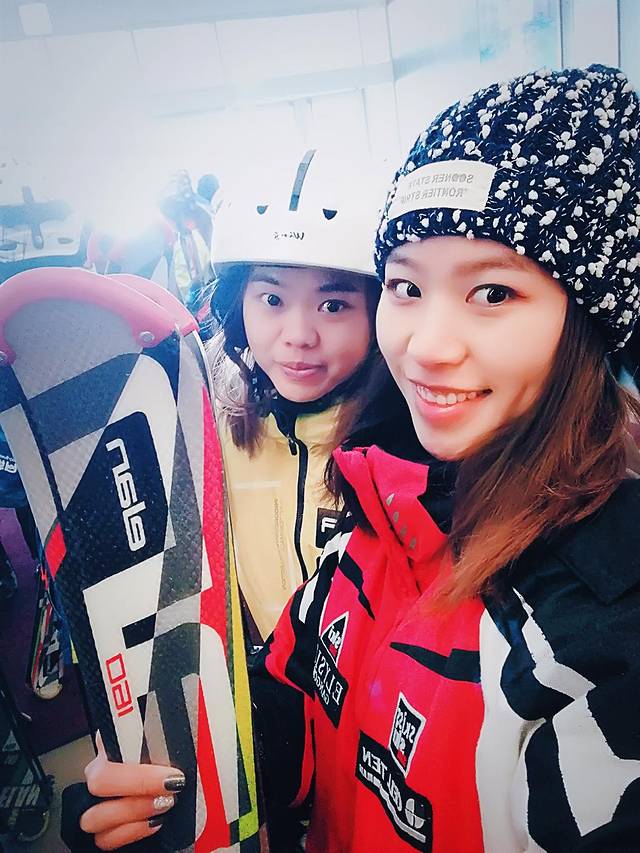 09:00 抵达滑雪场,换区装备和滑雪服。导游会建议大家租赁头盔保证安全,还有滑雪镜之类。但是个人觉得,除非你特别害怕或者就是想凹造型,那么就去租一个,滑雪镜不知多少价格,头盔是一万韩元一人。不然,自己的墨镜以及帽子就足矣。