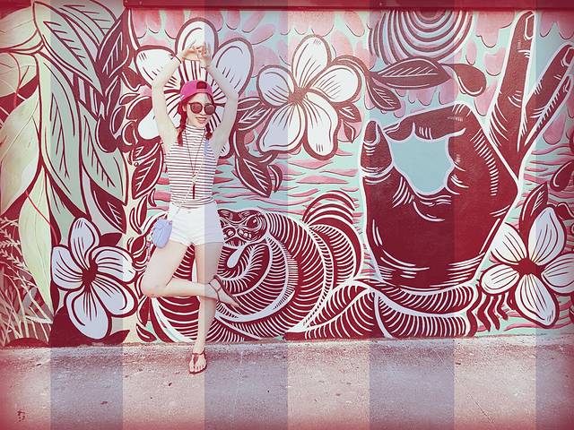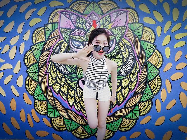 由于一早就去深浅,花费了不少体力,然后回到民宿,我们洗了个澡就睡下了。起来也下午了,该出去觅食了!换了身衣服,找到街头涂鸦,就去街拍咯!