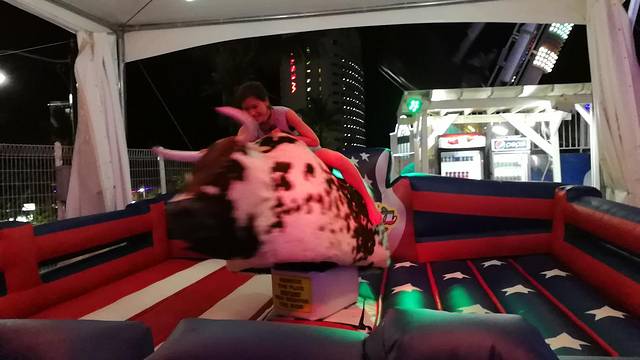 没想到,关岛这里还有个路边的游乐园,游玩项目有海盗船、斗牛、碰碰车、还有个不停旋转的东东。可以单买,也可以有套票,小侠单买了斗牛,$5,刺激啊!!可以玩两次,掉下一次再来一次,还是性价比很高的。