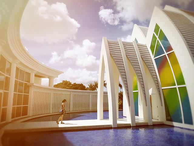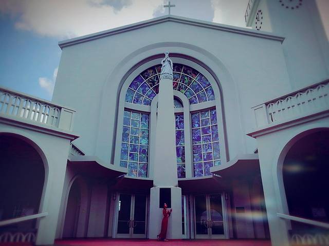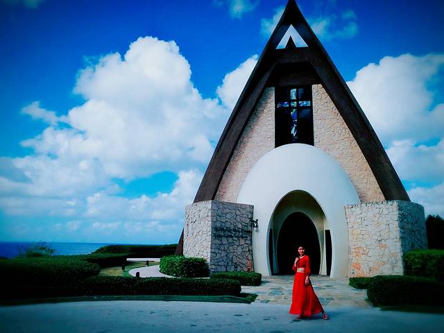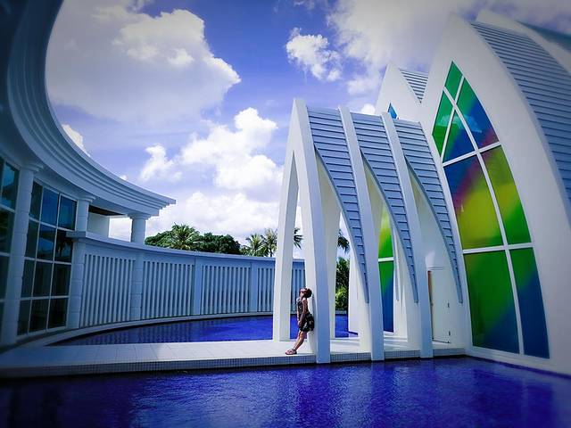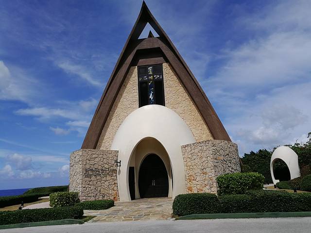 先来到巨蛋教堂,太棒了,今天大门开着,原来是工作人员过来维护。好快拍一拍~关岛的天气真的太棒了!