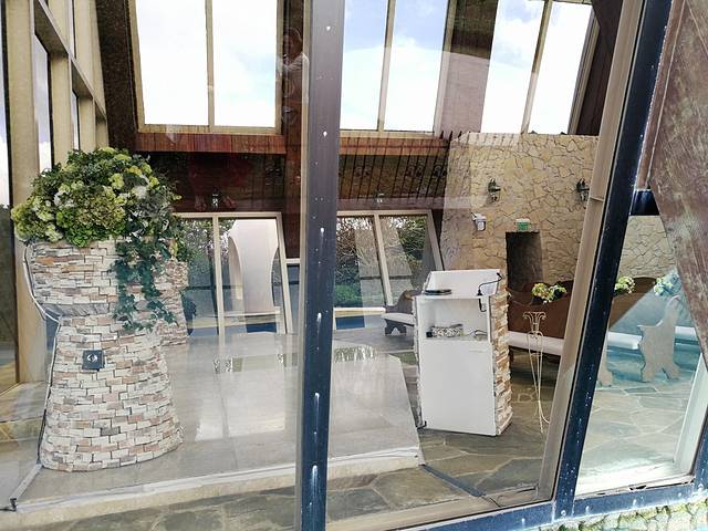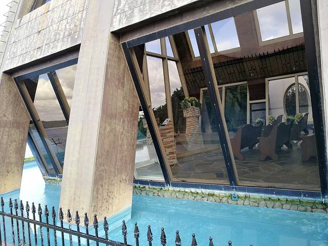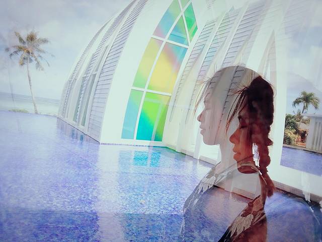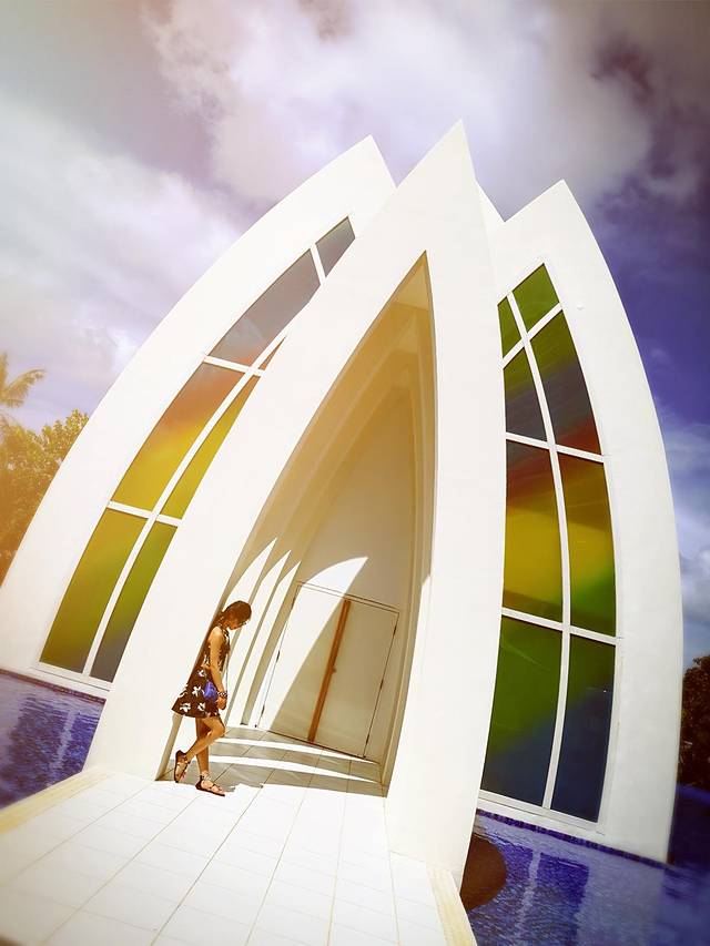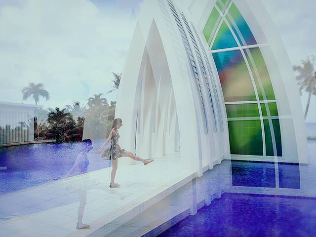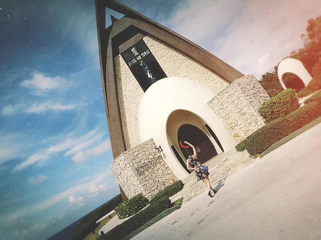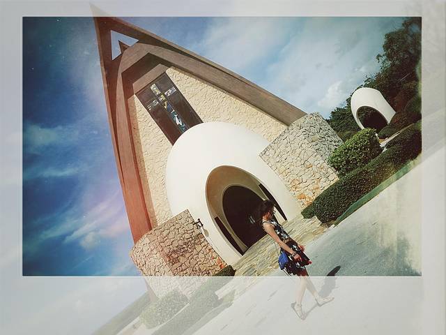 教堂后面就是海,海风吹拂,特别舒服!还可以透过玻璃隐约看到里面的场景,真的好美~