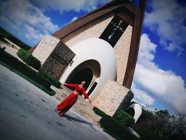 之前说了,觉得参观教堂时候衣服颜色不够鲜艳,所以这次换上大红裙,好好的去拍照咯!