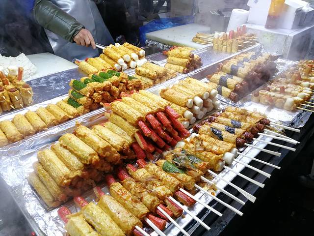由于还没有足够的韩元现金,在寻找换钱所时,身边一路香气诱人,诱惑着饥肠辘辘的我们!哈哈哈。