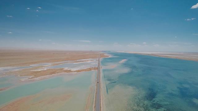 有无人机的情况下可以停下来航拍一段,不然可以直接开过。这些盐湖也是有退潮期的,八九月份后基本颜色没有这么好看了。