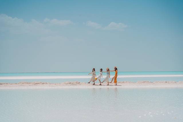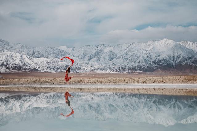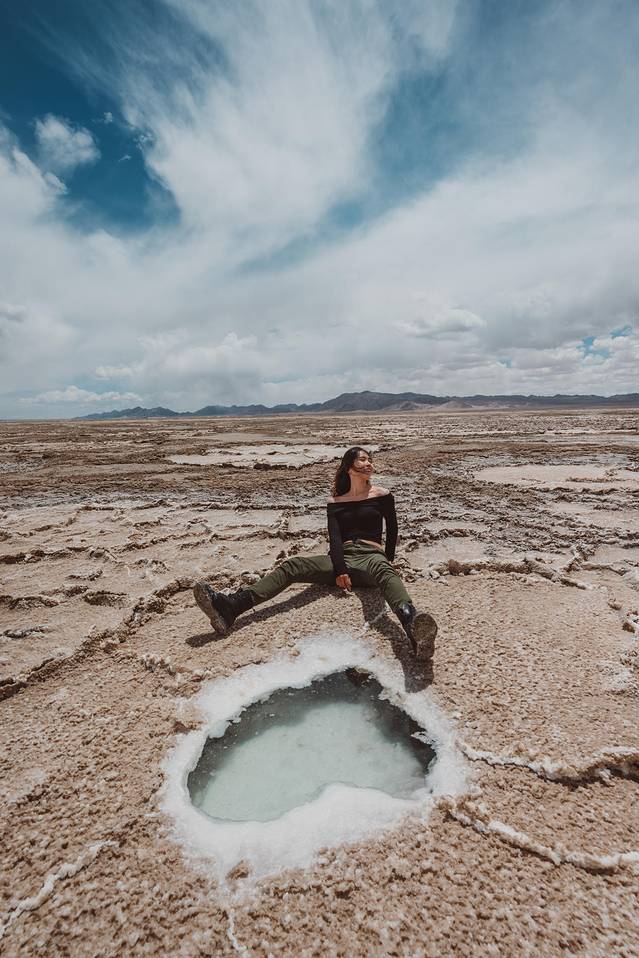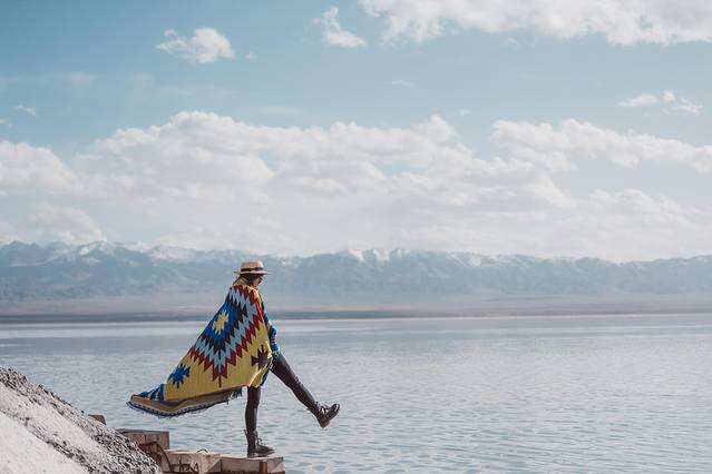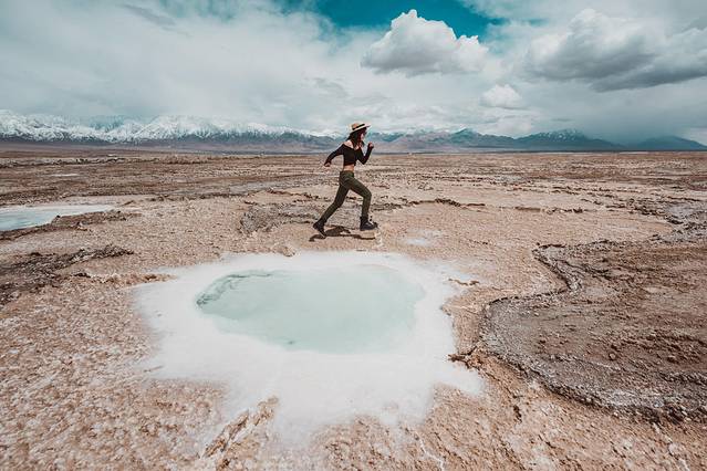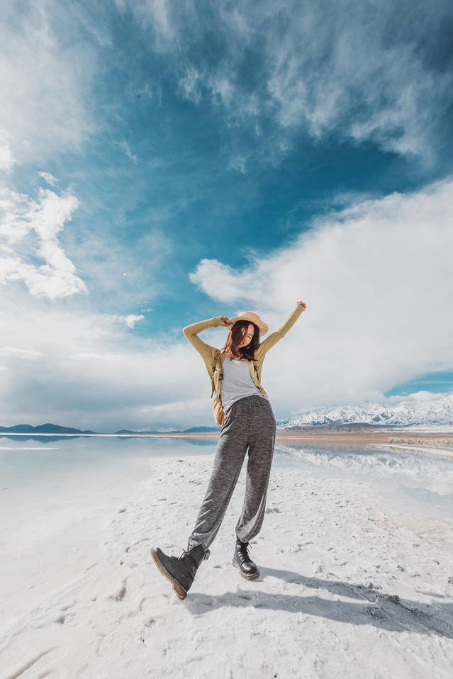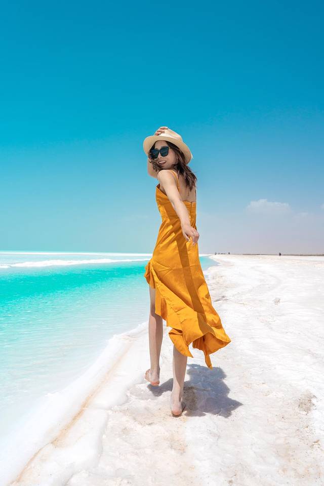 在盐湖边拍照需要注意底下是否会踩空,基本白色盐的部位不要踩会整个陷下去的。对鞋子裤子损坏有点大。