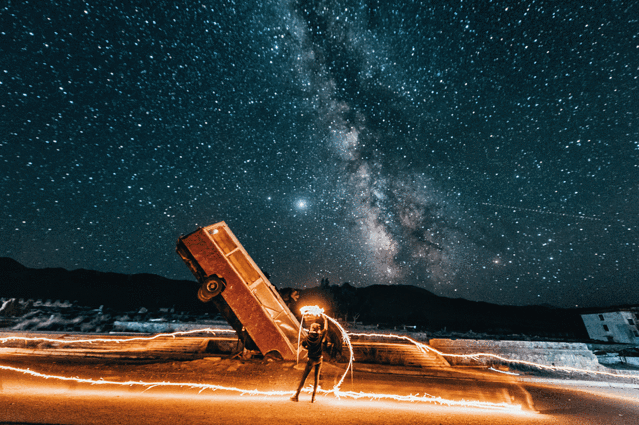 又一星空拍摄点位,即使是废弃的小镇依旧是闪闪发光的样子。