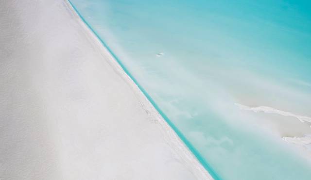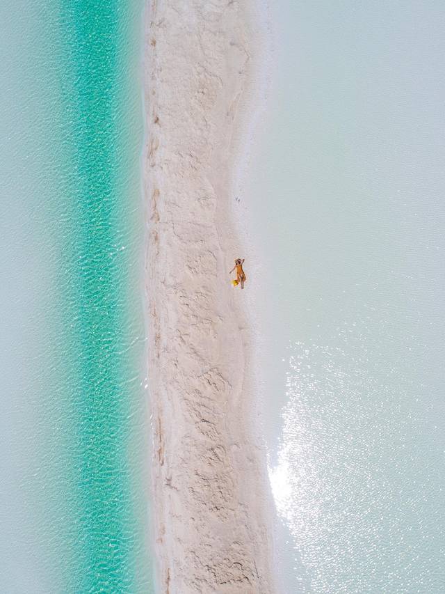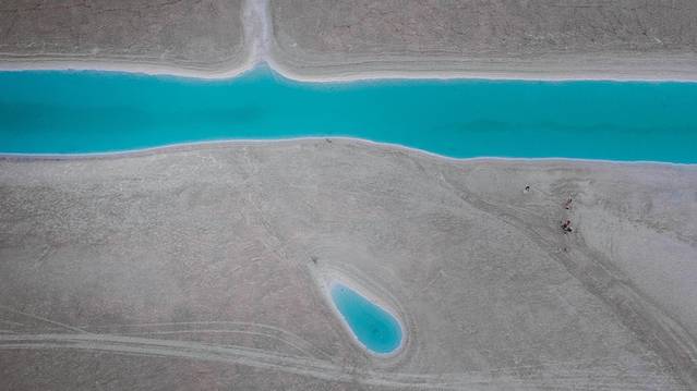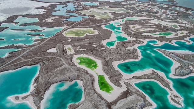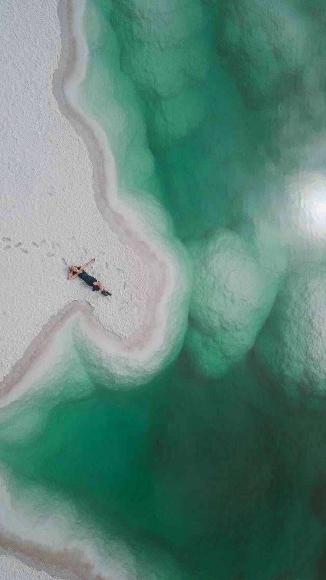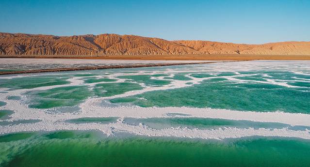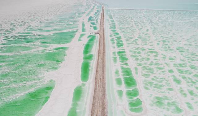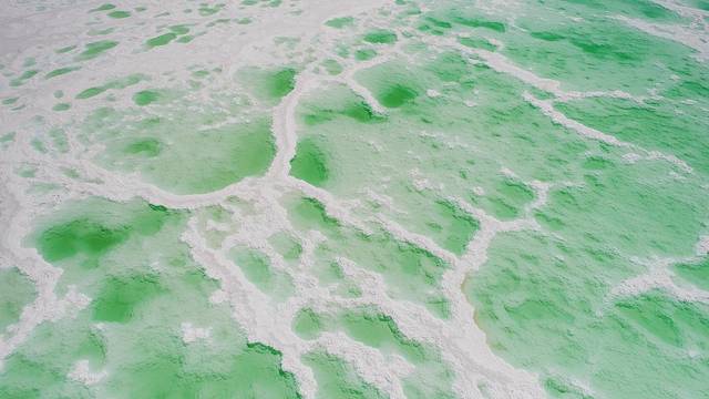 所有蓝和绿颜色交错在这一个一个盐湖中