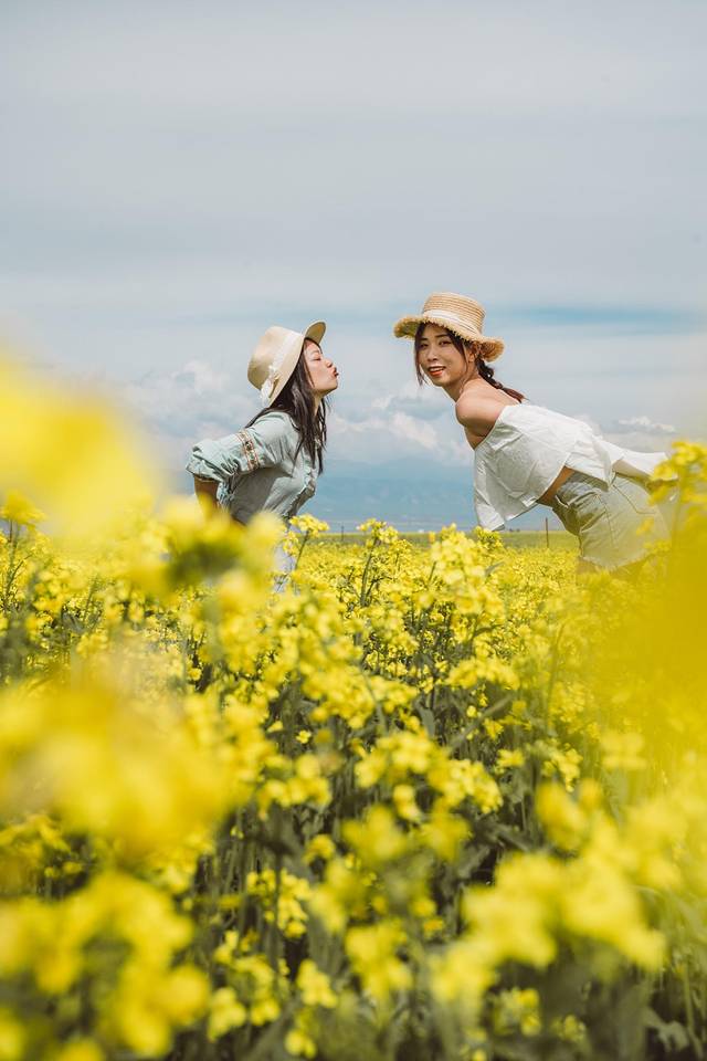 青海湖沿途很多当地牧民自己种的花田,这里有着最纯粹的蓝,最艳丽的黄,水天一色的天际线,纯净的蓝天云卷云舒,辽阔的草原风吹草低见牛羊…