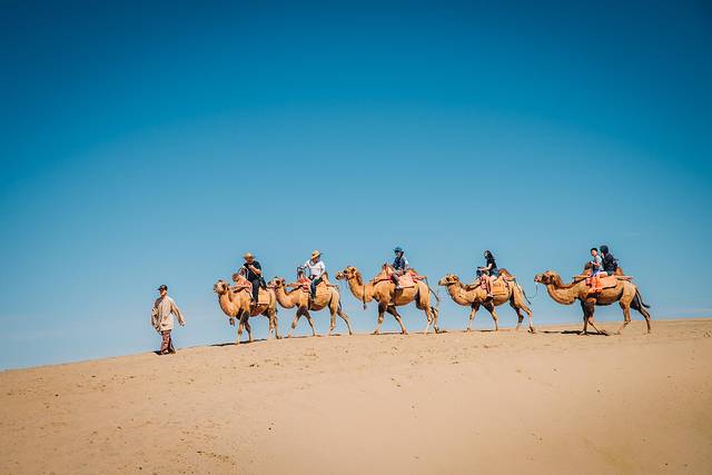 丝绸之路上的沙漠绿洲:敦煌鸣沙山是国家级重点旅游风景名胜区,处于库姆塔格沙漠边缘,与宁夏中卫县的沙坡头、内蒙古达拉特旗的响沙湾和新疆巴里坤哈萨克自治县境内的巴里坤镇同为中国四大鸣沙山。