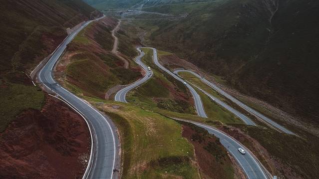 站在高处看地面车子开过的痕迹,感觉这也是一个不错的赛车道。