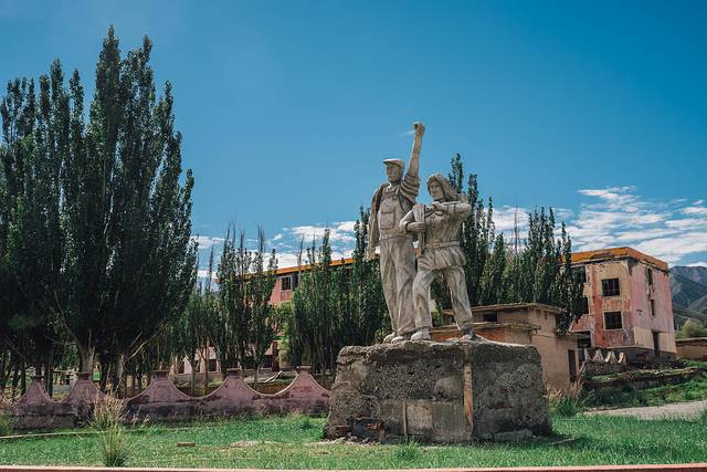 石油小镇位于在甘肃省酒泉市阿克赛哈萨克族自治县内,因为石油资源丰富,所以渐渐有许多人在这里定居,这曾经也是繁华富裕的城镇。石油小镇里有它的行政机构、幼儿园、学校、医院、工厂、教堂、街道、小巷等,基础设施一应俱全,人们安居乐业,其乐融融。
