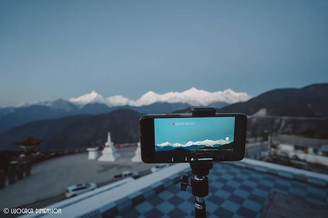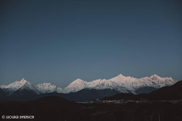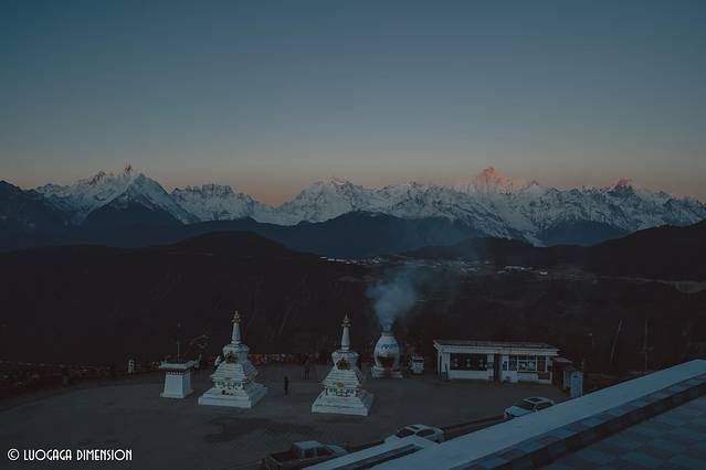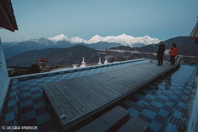 套上羽绒度羽绒裤,爬上酒店天台,等待日照金山,随着雪山呈现,心中的阴霾也完全消散,这将是一个完美的新年清晨。