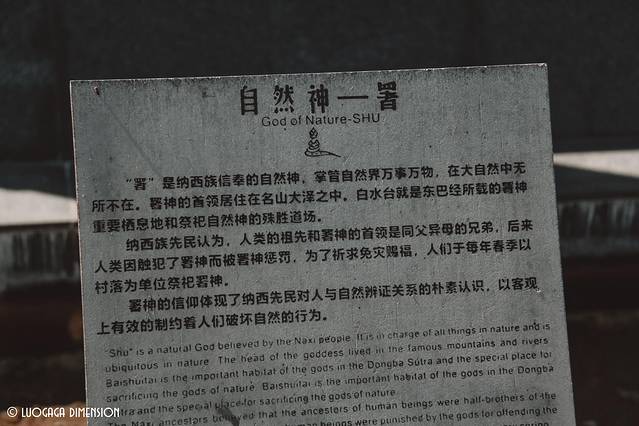 白水台所在之处也有丰富的文化内涵,这里是纳西人的神山,相传是纳西人信奉的自然神的主要居所,景区大门就立着很大的自然神-署的塑像。