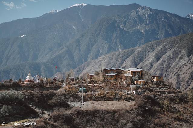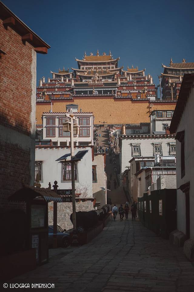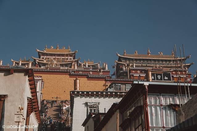 通往寺院的楼梯旁边都小栋的居所,跟色达佛学院差不多,都是修行的僧侣住的,修行到了一定的程度就会被分配一方土地,用于修建居所便于修行。