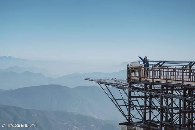 从这里可以“一览众山小”,连绵的横断山脉隐藏在云雾之中,我们去的那天天气很好,能见度已经算不错了,远眺层层叠叠的群山,像水墨画一样。