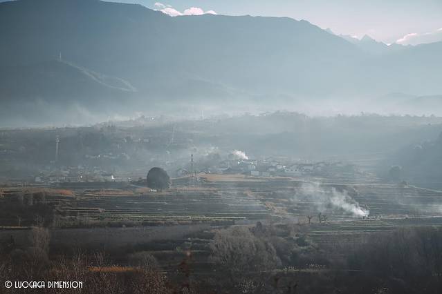 还有山间的梯田、农舍,沐浴在阳光里,有阵阵炊烟飘出,一幅生活的画面。