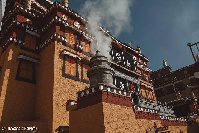 很遗憾,最后因为我忙着供灯没来得及问他的名字和联系方式,认识这样一个人应该挺有意思的。记得他有着黝黑的皮肤,轮廓分明,长得挺帅气,三四十岁吧,一米七左右。别的讲解员都要带个小蜜蜂介绍,而他就很随意,什么设备都不带,就纯聊天的状态。讲完后,他忙着回家走亲戚了,在寺庙里就再没看到他了。看到这篇游记这段话的朋友,如果有机会去松赞林寺,帮我问问他的联系方式呀哈哈哈哈~