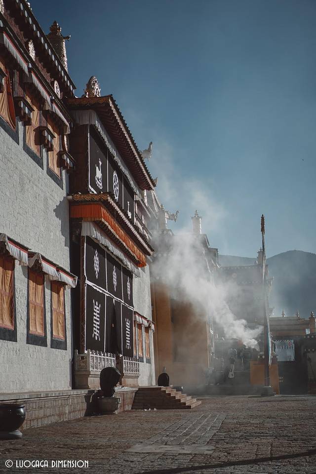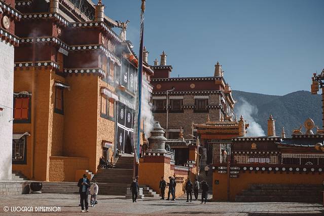 从大门到寺庙还需要上坡和爬楼梯,海拔三千多还是有点累的,气喘吁吁终于看到了正在楼梯中间高谈阔论的讲解员,事实证明,追上他是很正确的选择,他是个很虔诚的佛教信徒,同时也很博学,从他的谈吐中可以了解他肯定是有内地学习或者生活经历的,懂的东西很多,说话常常一针见血,一路上给我们讲了很多藏传佛教的文化,不是死记硬背的,都是有感而发,原本规定40分钟要带完一个团,结果最后他讲了将近一个半小时。
