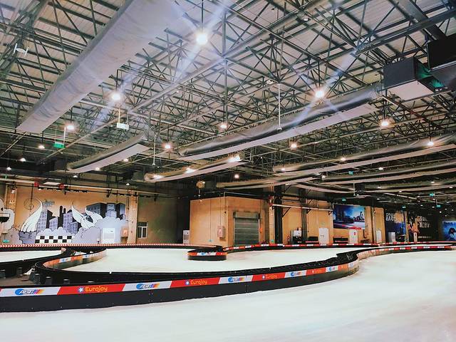 下车后他赶紧跑进商场里,找到电梯进入按下8层,来到赛车场体验在冰面上开赛车的快乐!