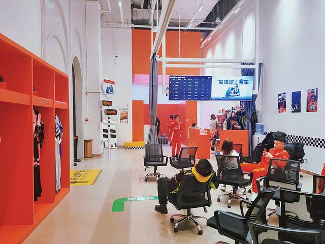 在吧台处买好单人票后,就可以前往更衣室更换帅气的赛车服啦!