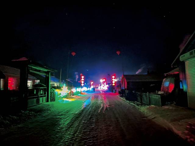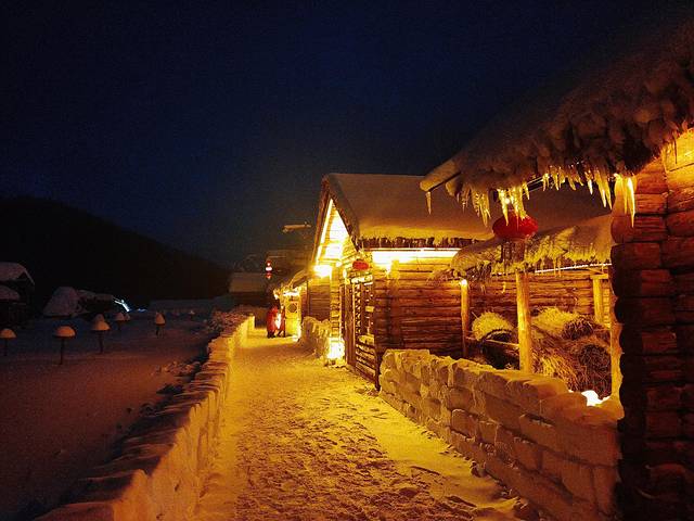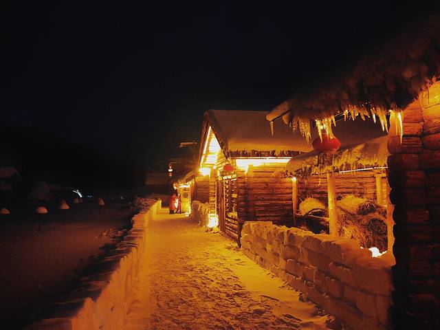 到达老白山雪村时天色渐晚,我们跟着工作人员参观园区一圈,来到是雪村特色的木屋,当初摩纳哥元首阿尔贝二世亲王居住过的木屋,然后去到雪博广场看雪雕进雪屋,再到东北民俗街体验摊煎饼、做豆腐、沾糖葫芦等等民俗体验!