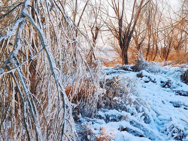 走在室外到处都是自然景观,下图是“冰挂”景观,虽然对于欣赏者来说是好看的,但是对于树木来说是一种自然灾害。