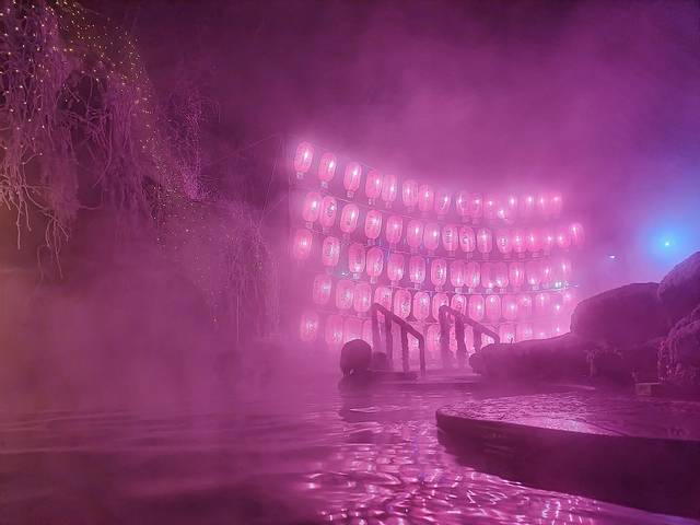 整座度假村拥有室内温泉、室外温泉,以及万米的水上乐园,娱乐性的项目还有KTV、酒吧、棋牌室。度假村里非常适合一家老小齐上阵,即有适合老人的养生温泉,又有适合儿童的水上乐园,还有汗蒸房、按摩房等。