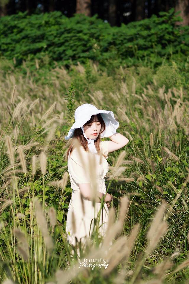 我们在江心洲上找到了一处隐秘的小森林,成片的芦苇荡非常壮观,也很适合穿着法式连衣裙拍照。