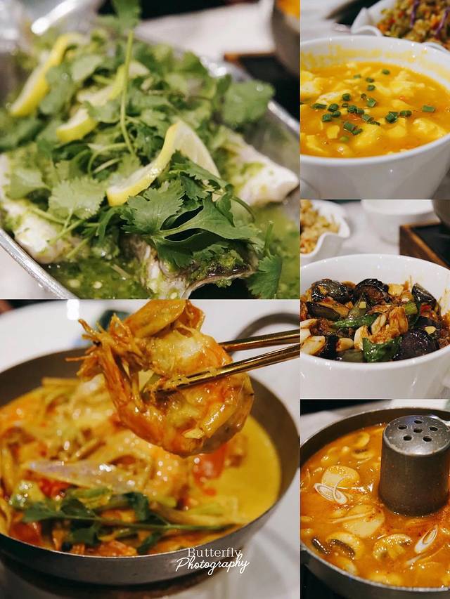 这处灯光也很美,落地灯美而不张扬。整个色调都很柔和美丽,清新淡雅。招牌芒果虾球味道鲜甜,一口咬下去非常满足,搭配酱汁真的恰到好处,芒果味的蛋黄酱有一种水果的清香之感。三杯鸡甜度适中,鸡肉也很鲜嫩。