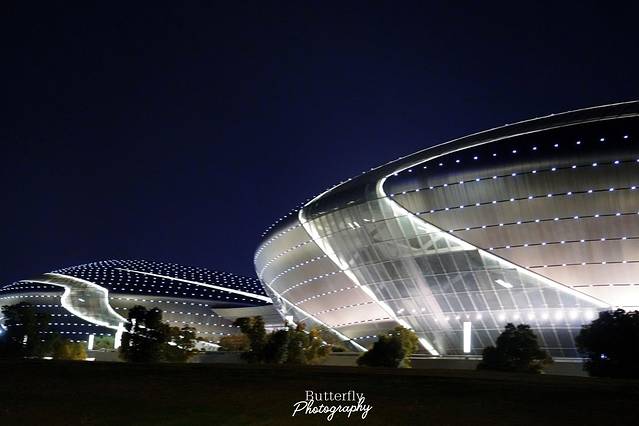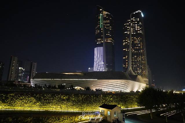 白天的喧闹一扫而过,摩登的夜晚别有魅力,夜晚的它蜕变成曼妙的午夜精灵,集市、灯光秀、南京眼步行桥和保利大剧院的灯光交相辉映,建筑之美尽显无疑。