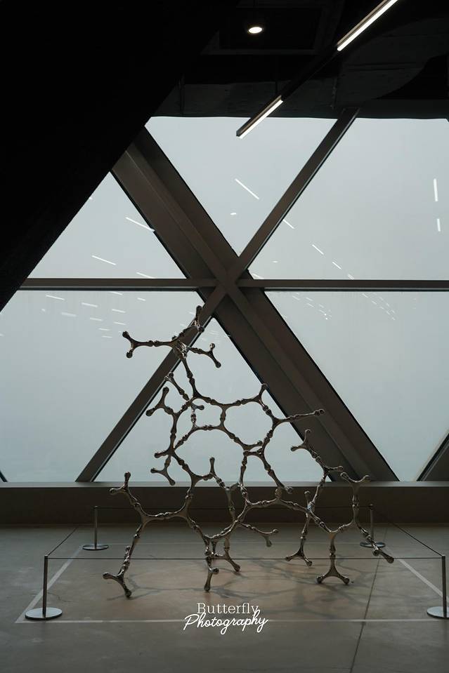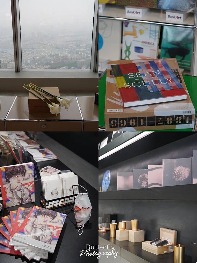 展览在52层的原因,非常适合凹造型,各种光线的叠加也让展览更增添了一丝魅力。观众在展览空间和空中城市视野之间穿梭游走,艺术作品既是展览空间的一部分也是城市空间的一部分。同时,在这里还能买到各种文创周边,从书本到布袋等,非常不错。