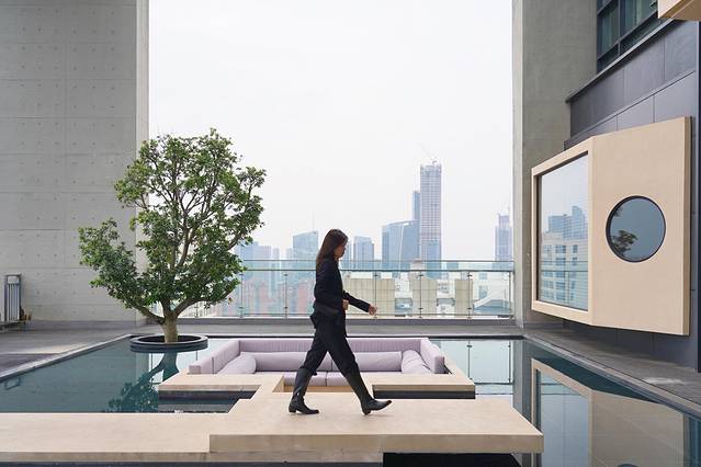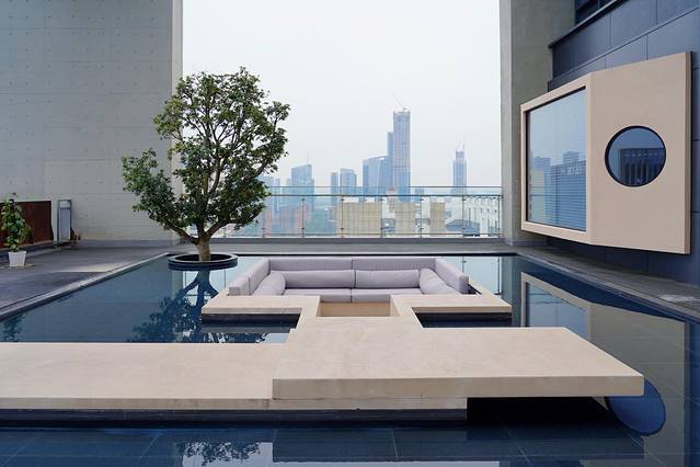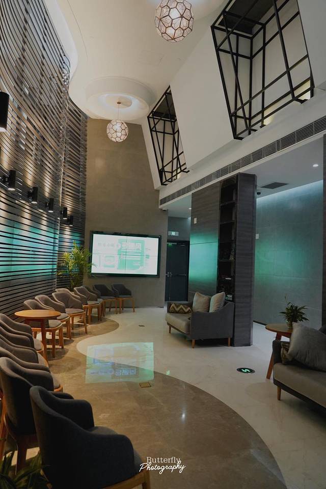 艺术家工厂不愧是一个艺术气息浓郁的地方。整个写字楼里聚集了很多和艺术设计相关的公司,最惊喜的是顶楼22层的露天平台,被打造成了酒店度假风,还可以俯瞰河西的夜景。这栋写字楼的建筑设计上,融入了许多艺术元素,淡黄色的墙壁和浅灰色的墙体,配色沉稳低调,一颗生命之树增添了许多生机和活力,室内的走廊设计也很好看。