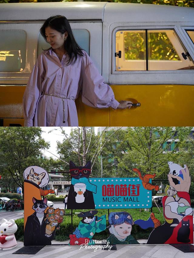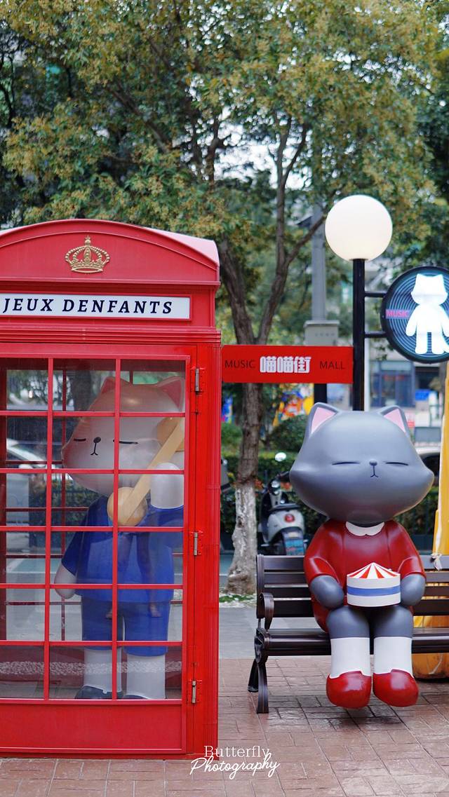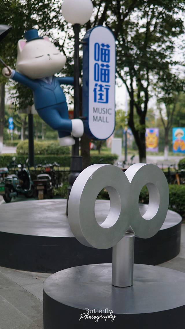 马路边几百米长围墙上,许多猫咪卡通画像,神情千姿百态,活泼可爱。根据著名的影视舞台作品设置的“猫”主题堡垒、旅行-摩登车站、世界音乐画廊、Music Club小舞台等十七处猫咪的艺术雕塑惟妙惟肖,猫老板在屋顶吹萨克斯,Music Club小舞台上猫咪K歌,还有打着领结的绅士猫........