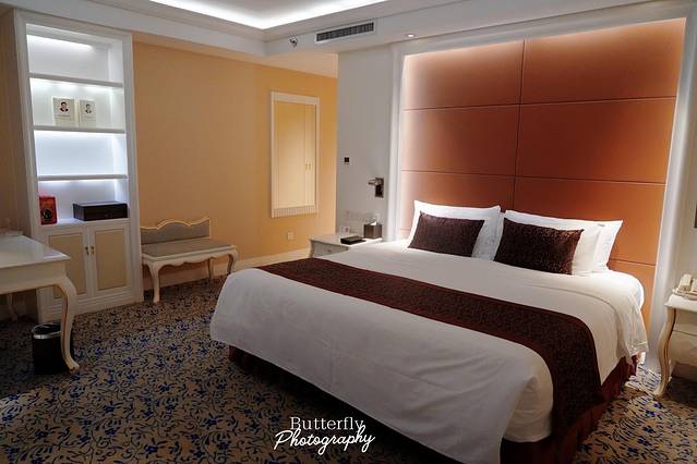 酒店的客房非常宽敞,米白色的色调有种欧式贵族的感觉。向窗外望去,视野足够好,下楼用餐和购物也很方便快捷。