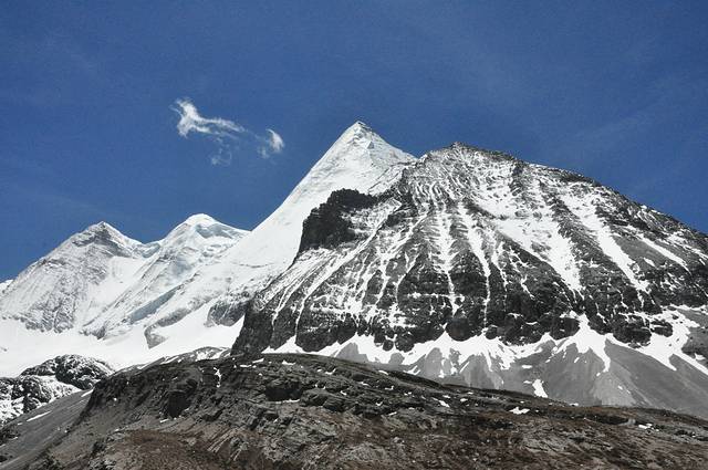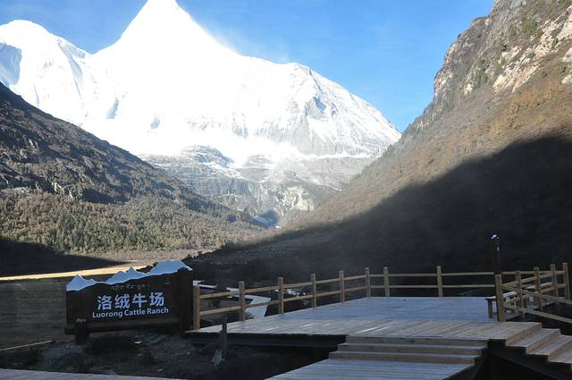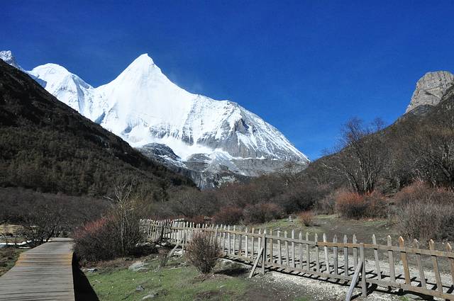 央迈勇,意为“文殊菩萨”,在佛教中是智慧的化身,是三座雪山的南峰,佛位第一,海拔高度为5958米。