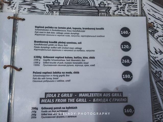 这里是主食部分的菜单内容,一份1.3kg的猪肘才260捷克克朗,比维也纳的猪肘便宜了将近一半,好划算呐