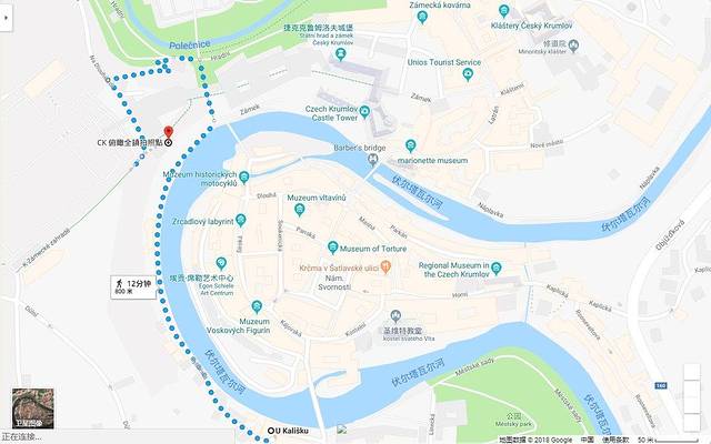 从旅馆出发,沿着伏尔塔瓦河步行10来分钟,便可以到达城堡花园