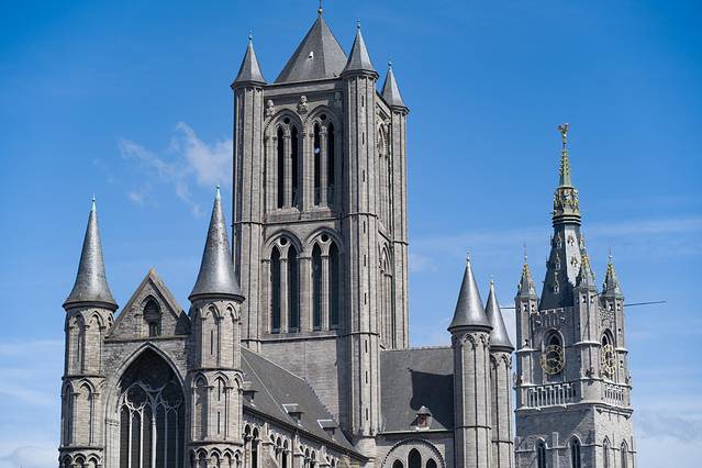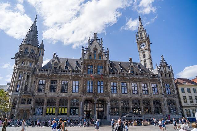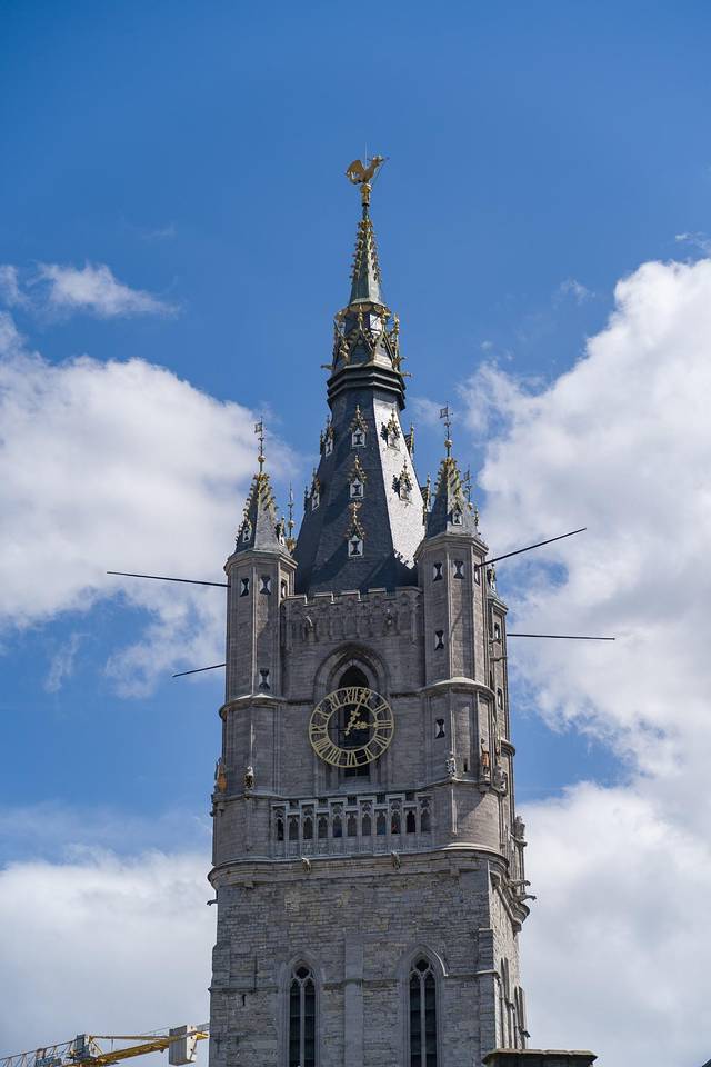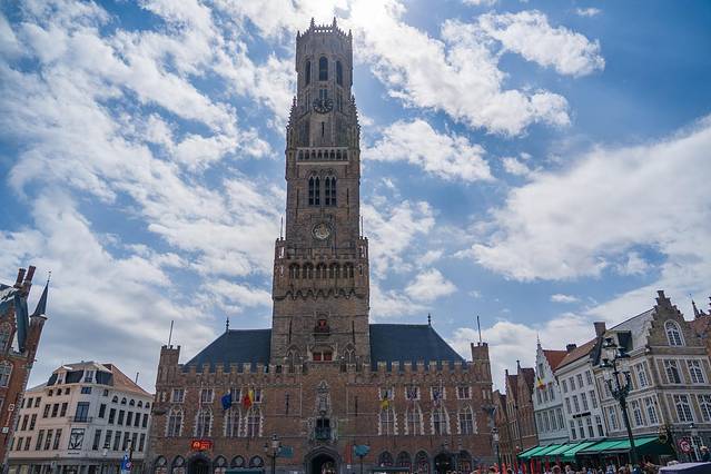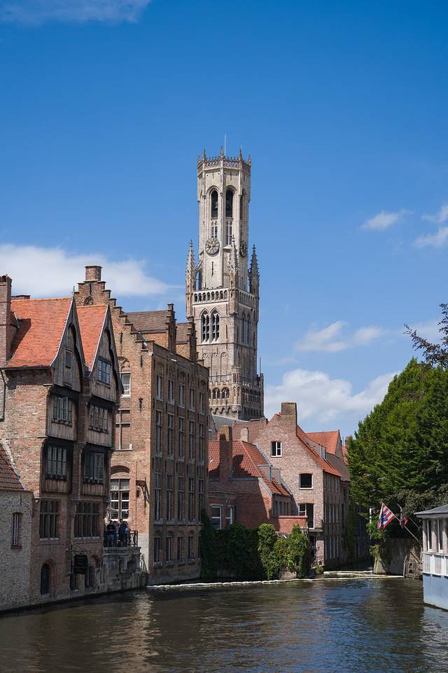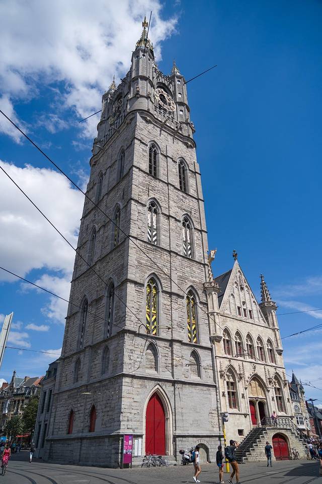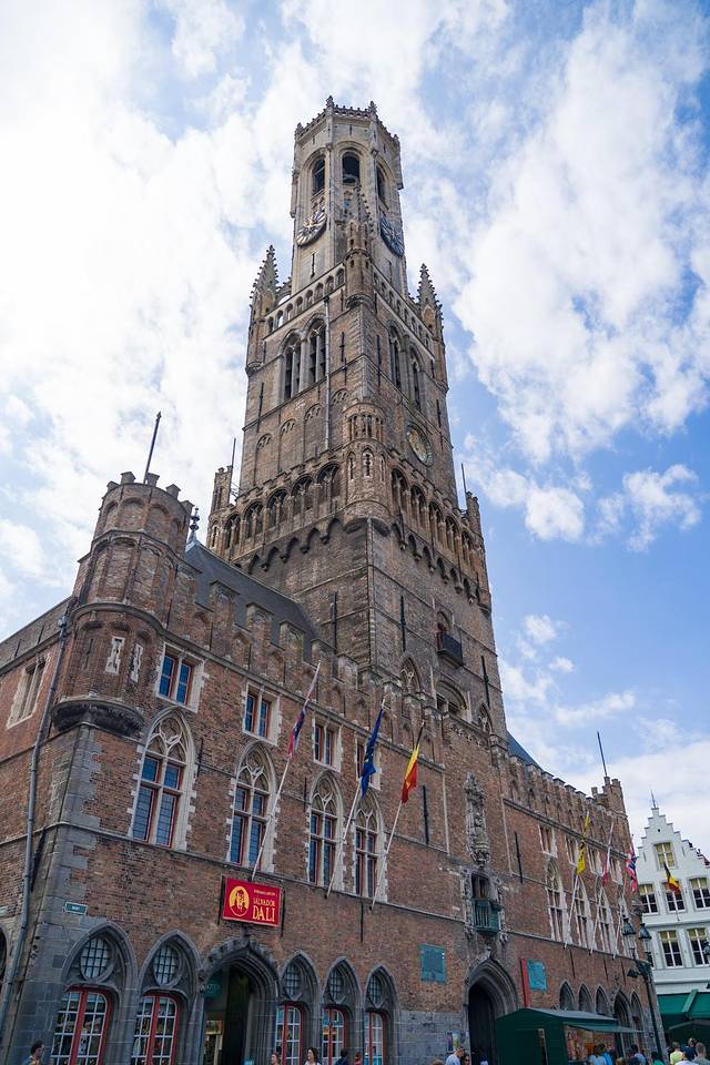 集市广场上最著名的建筑,是这座建造于13至15世纪的钟楼 Belfort,被誉为比利时最精美的建筑。高83米的钟楼上有47个钟每一刻钟敲响一次,据说,当年拿破仑兵临城下,这47座大钟同时响起,竟淹没了法军的隆隆炮声!