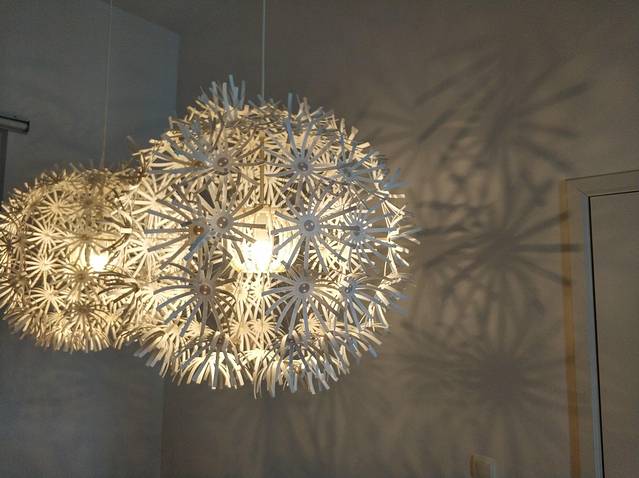 喜欢房东的简约北欧装潢,尤其是这盏等,厨房里也装了2支,那倒影在墙上的灯花,很梦幻!