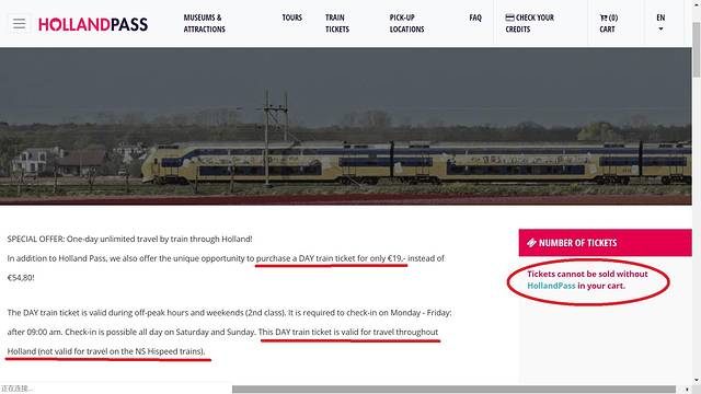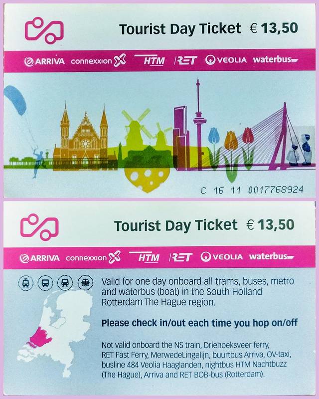 也就是说,如果你在行程上在一天里有城市与城市之间的往返,那么在荷兰铁路交通如此昂贵的情况下,有一张19欧的火车天票就省心多了,要知道一张火车天票的原价是54欧哦!而这张19欧的天票是只有购买了荷兰通票的基础上才有资格购买的!